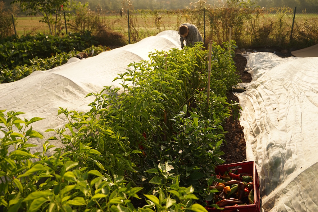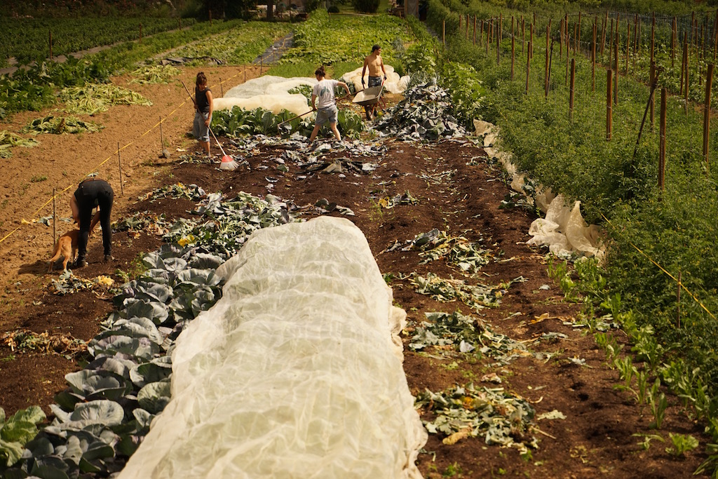 Biointensiver Anbau bedeutet eine kleine Fläche intensiv zu bepflanzen ohne dabei den Boden zu verschlechtern. Wir erreichen dies durch regelmäßige Kompostgaben und wenig Bodenbearbeitung. Viele dieser Beete werden im September mit ihrer vierten Kultur bepflanzt!