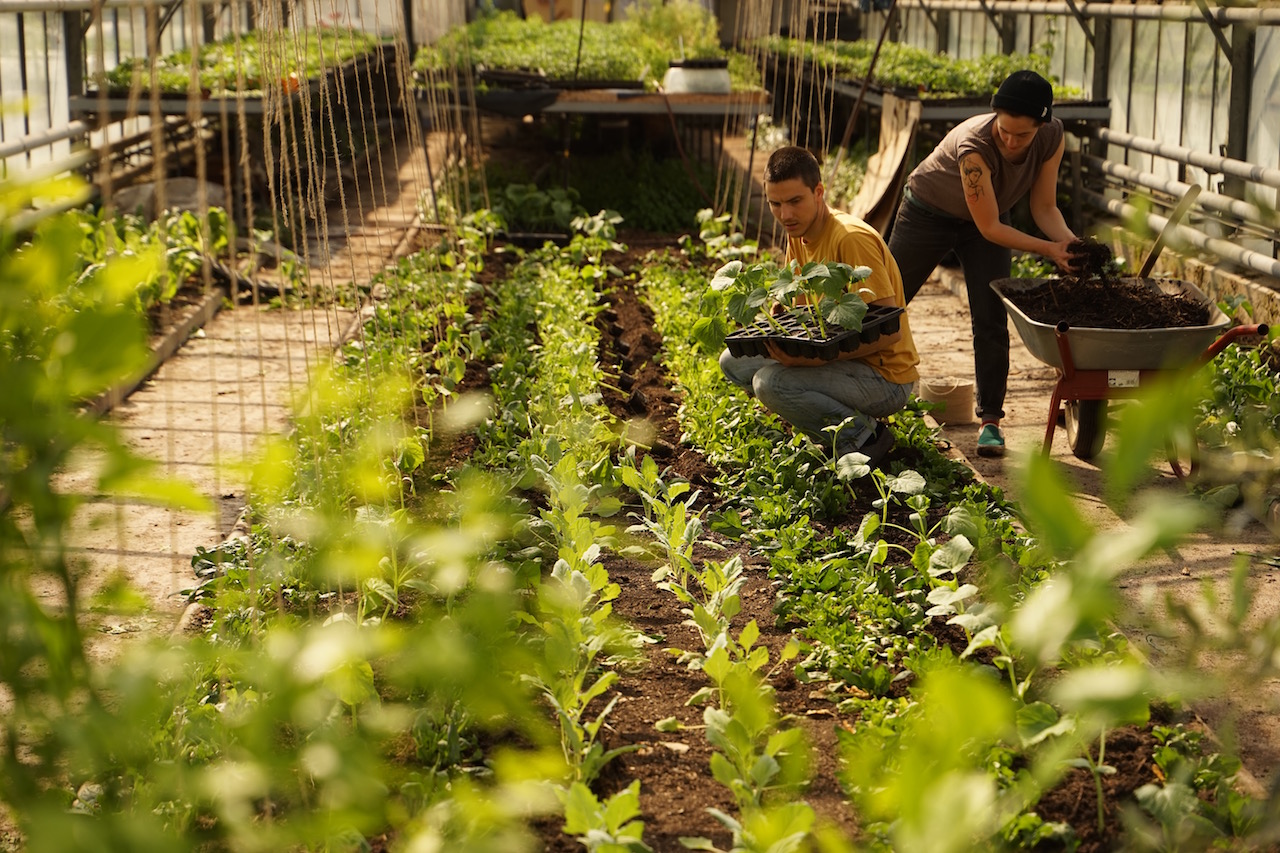 Wir pflanzen im April die Tomaten und erwarten die ersten Tomaten im Juni. Alex und Melanie pflanzen Anfang April die Salatgurken ins Gewächshaus. Diese wärmeliebende und schnellwachsende Kultur ist über eine großzügige Gabe Kompost dankbar. Hier verwenden wir unseren eignen Gartenkompost. Die ersten Gurken können Ende Mai geerntet werden. Wir bringen Ende April die nützlichen Raubmilben aus, um einen zu starken Befall der schädlichen Spinnmilben zu verhindern. Im Gegensatz zu Tomaten, werden Gurken gerne von oben beregnet und wachsen gut bei hoher Luftfeuchtigkeit.