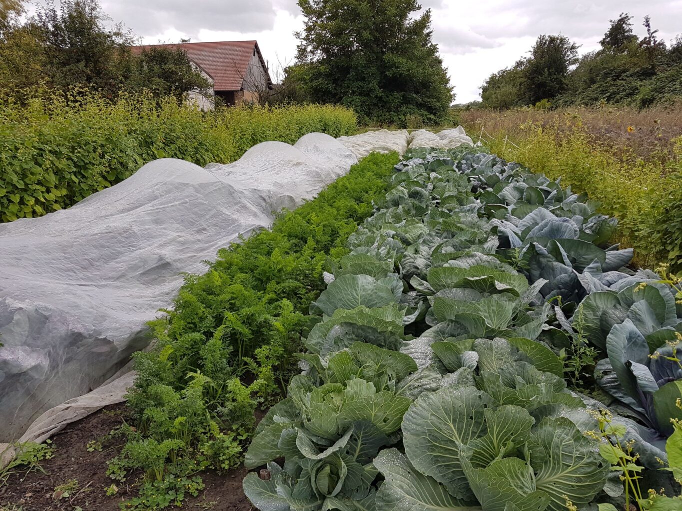 Lagergemüse wie Möhren und Kohl werden Ende Juni gesät bzw. gepflanzt. Die beiden Bilder zeigen, wie schnell unser Gemüse im Sommer bei ausreichender Wasserversorgung und mit viel Wärme und Sonne wachsen kann. Zwischen den beiden Bildern liegt nur ein Monat Abstand.