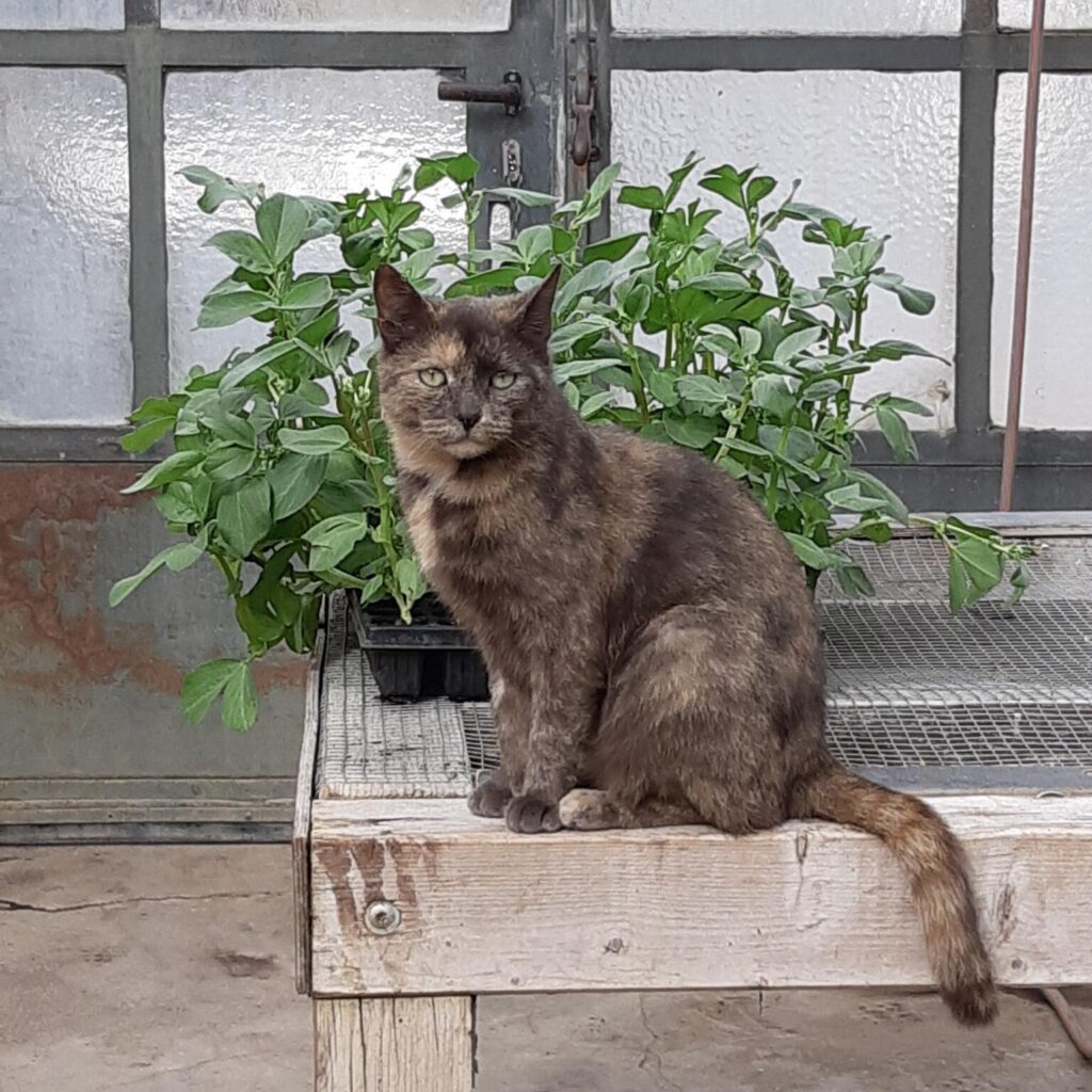 Seit einiger Zeit wohnt die Katze Camou bei uns auf dem Gelände. Sie hat die Herzen der Gärtner und Mitglieder erobert und lehrt die Mäuse das Fürchten!