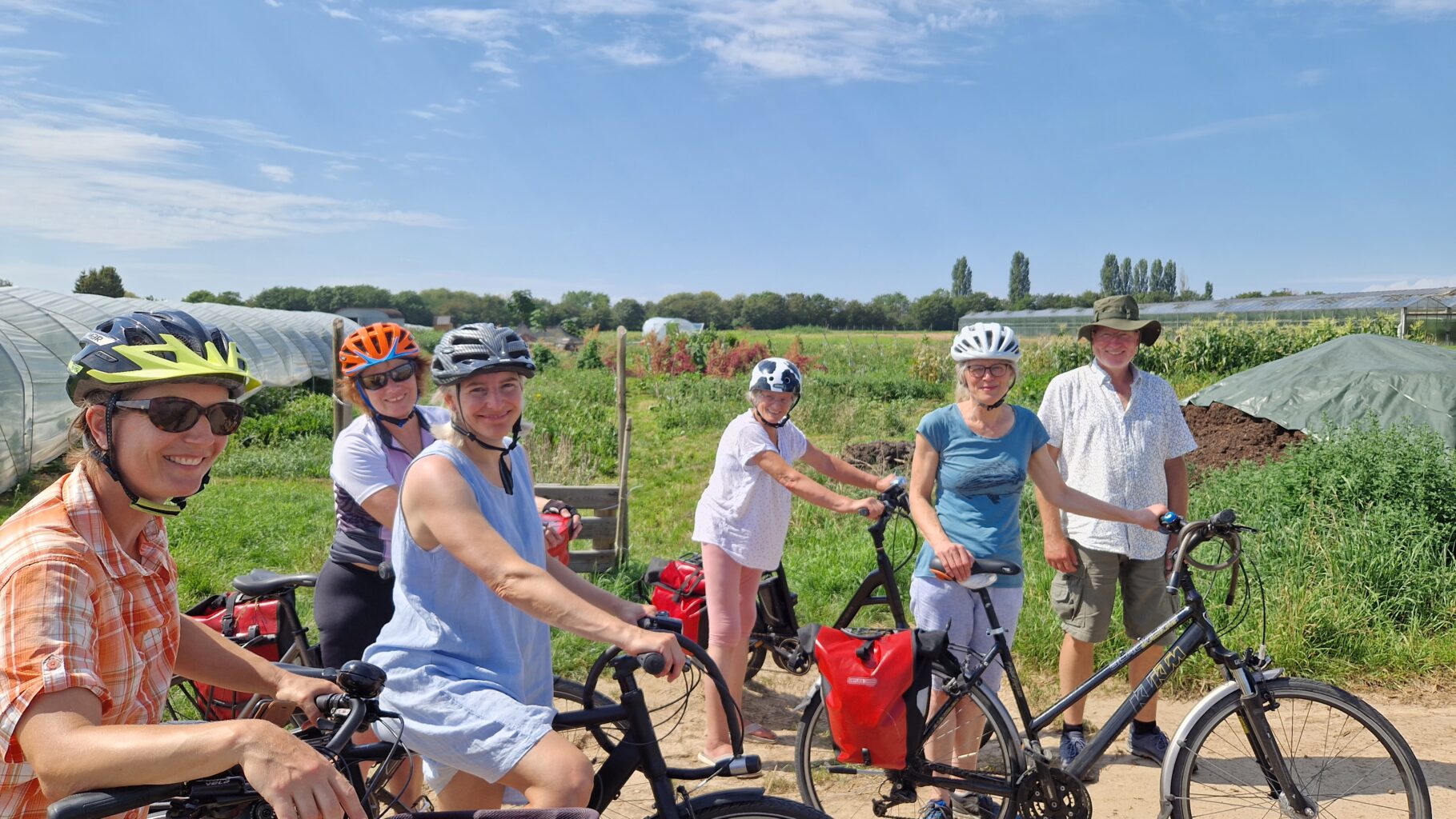 Eine Woche vorher hatten wir uns bei strahlendem Sonnenschein zu einer Radtour getroffen. Gemeinsam sind wir über die Felder von Weinheim nach Dossenheim zu Katharinas solidarischem Selbsterntegarten geradelt. Auf einem ca. 6 ha großem Feld baut die Gärtnerin Katharina selbständig seit einigen Jahren Gemüse an. Es war toll zu sehen, mit welchem Einsatz hier biologisch Gemüse angebaut wird! Die Abnehmer des Gemüses verpflichten sich ähnlich wie bei uns auch für ein Jahr. Allerdings müssen hier die Mitglieder ihr Gemüse selber ernten. Kleine Fähnchen an den Beeten zeigen an, wo die Mitglieder ernten dürfen. Es gibt auch im Gegensatz zu uns keinen festen Abholtag, jeder darf flexibel nach seinem Bedarf Gemüse ernten.