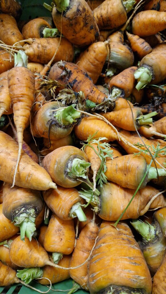 Da wir saisonales Gemüse anbauen, gibt es beispielsweise keine Tomaten und Zucchini im Winter und keinen Feldsalat im Sommer! Dafür schmeckt es dann um so besser, wenn es wirklich reif ist.